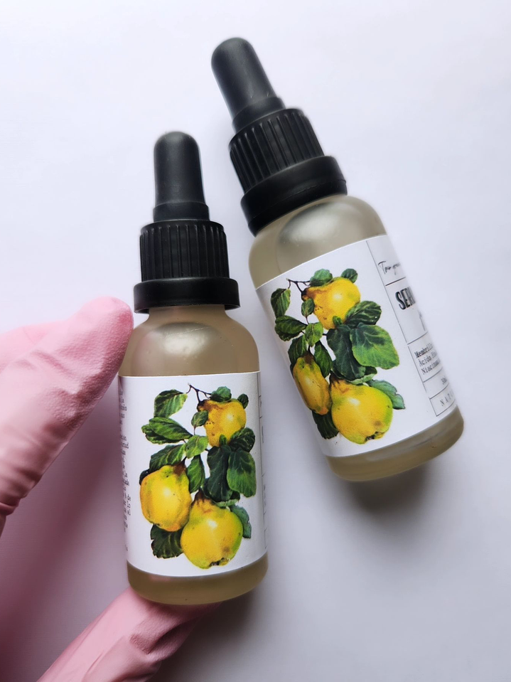 Descubre el secreto para una piel radiante con nuestro suero dorado a base de membrillo.